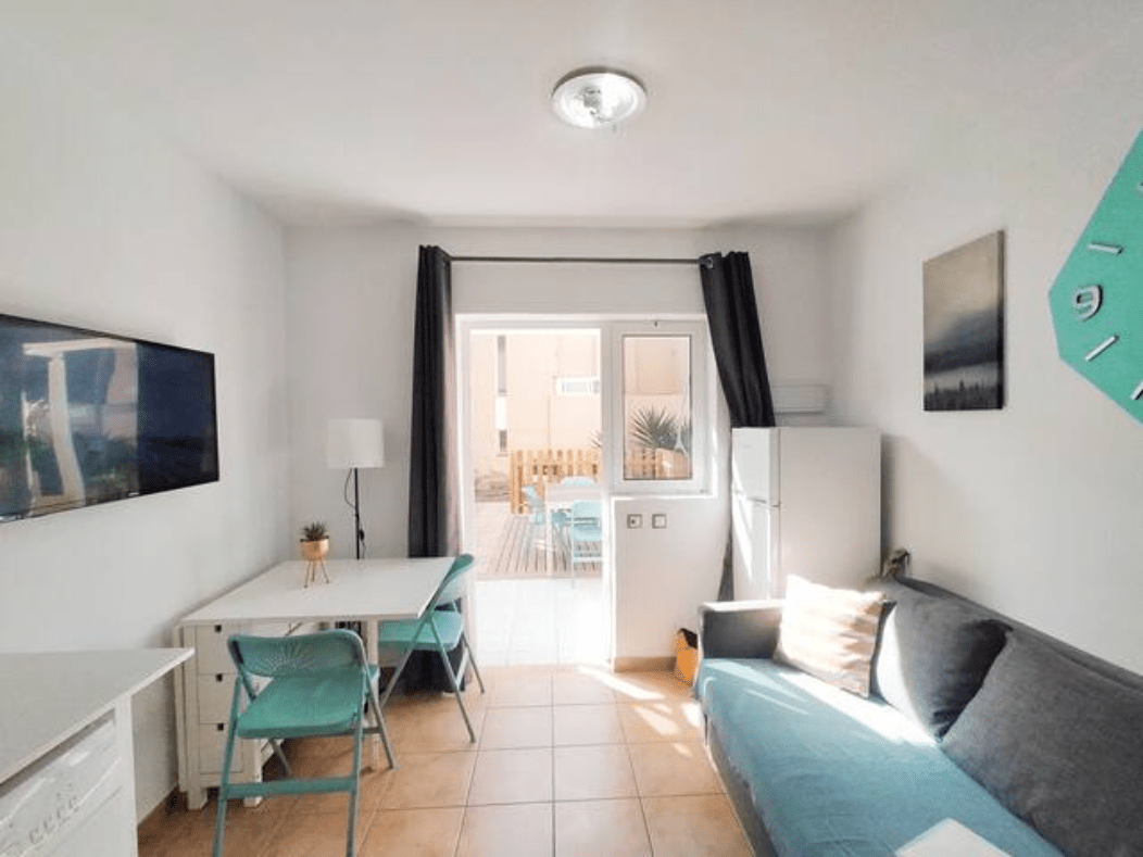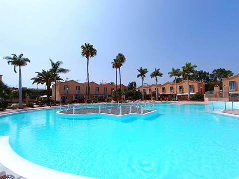 Come and enjoy our bungalow in Maspalomas, perfect for relaxing and having fun. It has a terrace with a table and loungers, where you can sunbathe and dine outdoors. Located in a complex with a pool and a children’s pool. Additionally, you’ll be close to the best beaches and leisure areas on the island: the Maspalomas Dunes, the beach, Meloneras, and more are just a 5-minute drive away.
