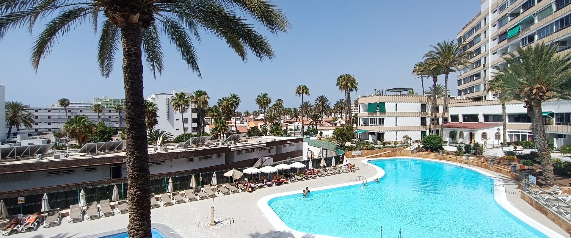 Enjoy your holiday in this studio located in the heart of Playa del Inglés, just an 8-minute walk from the beach. Set in a charming complex with two swimming pools and a shared sun terrace, perfect for relaxing and making the most of your stay.